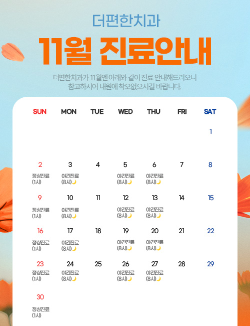 ※ 토요일과 일요일은 점심시간 없이 진료합니다.